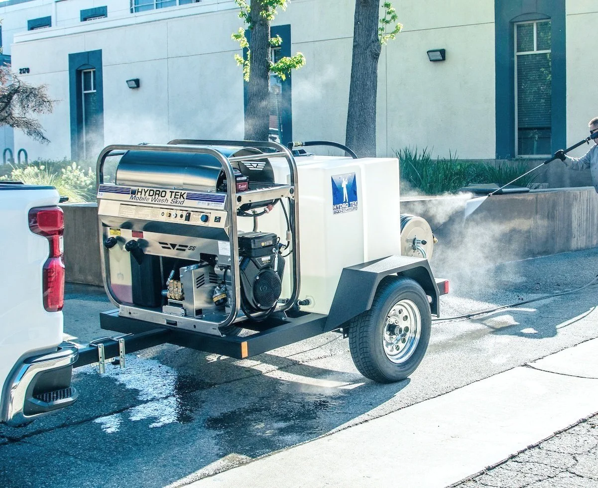 We use high-quality Hydro Tek equipment and solutions. Our machinery is fully integrated to self-contain to protect the environment from wash water runoff. We utilize eco-friendly solutions and in compliance with governmental drain regulations. Our hot water pressure wash is operated by a team of highly trained individuals to treat a wide variety of surfaces. No outside power is required. With our techniques and equipment, we guarantee to protect surfaces and clean the toughest of grimes!